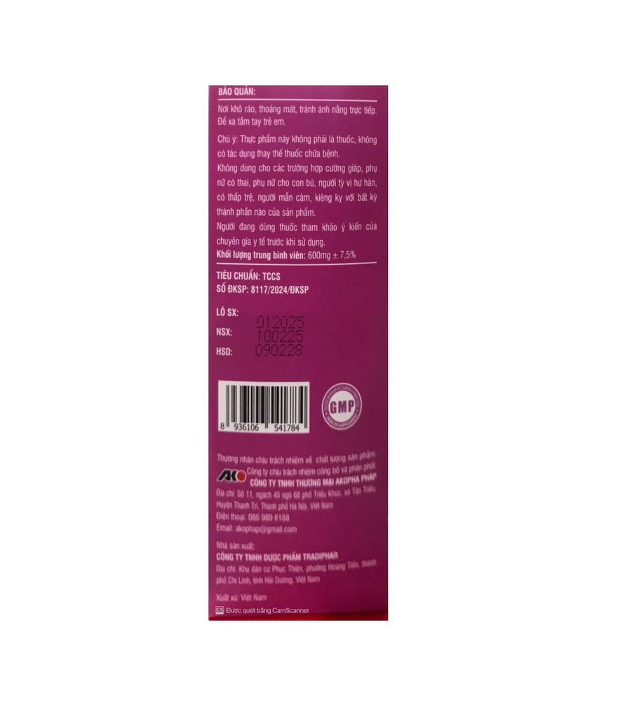 Công ty chịu trách nhiệm công bố và phân phối. CÔNG TY TNHH THƯƠNG MẠI AKOPHA PHÁP