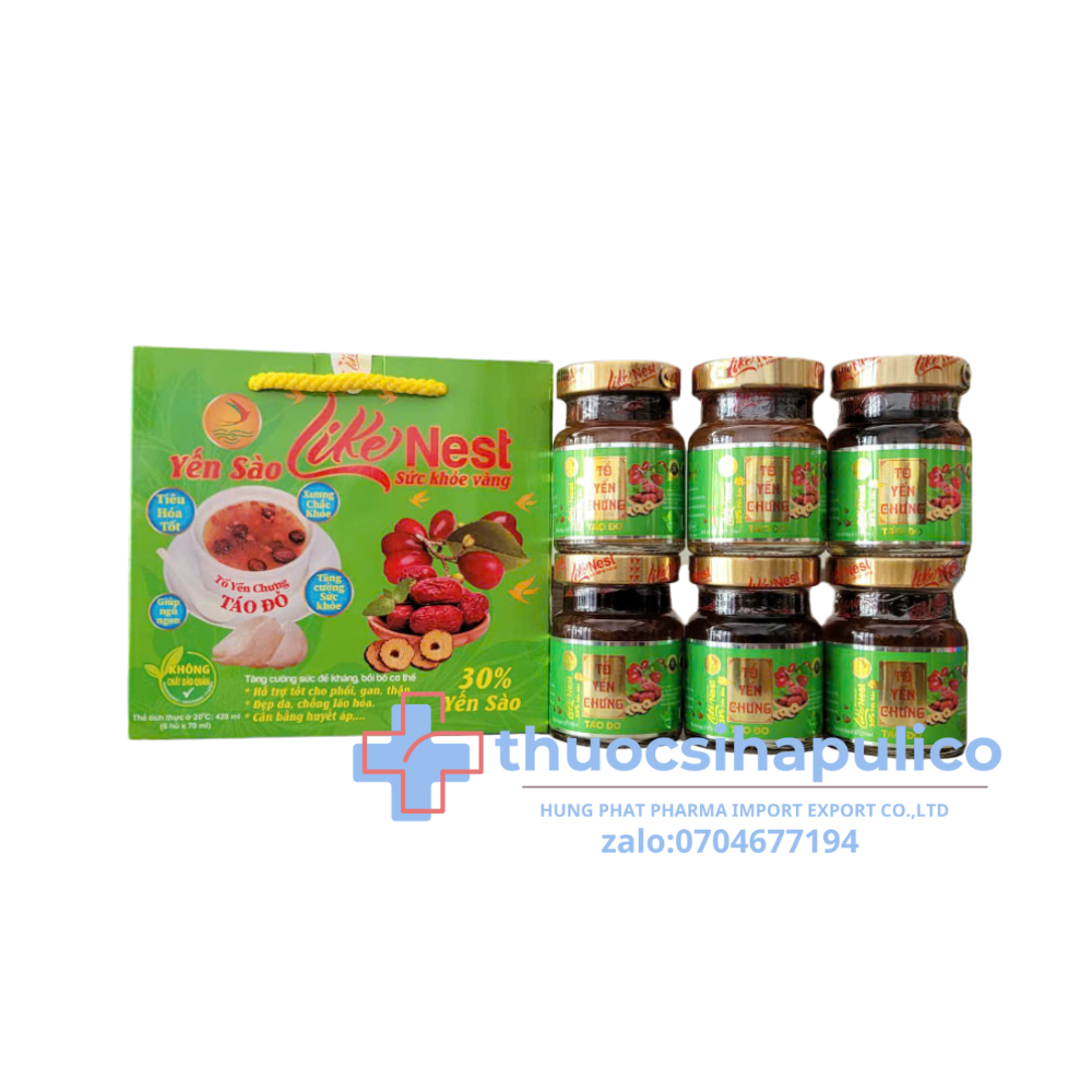 Nước, yến sào (30%), đường phèn, táo đỏ.